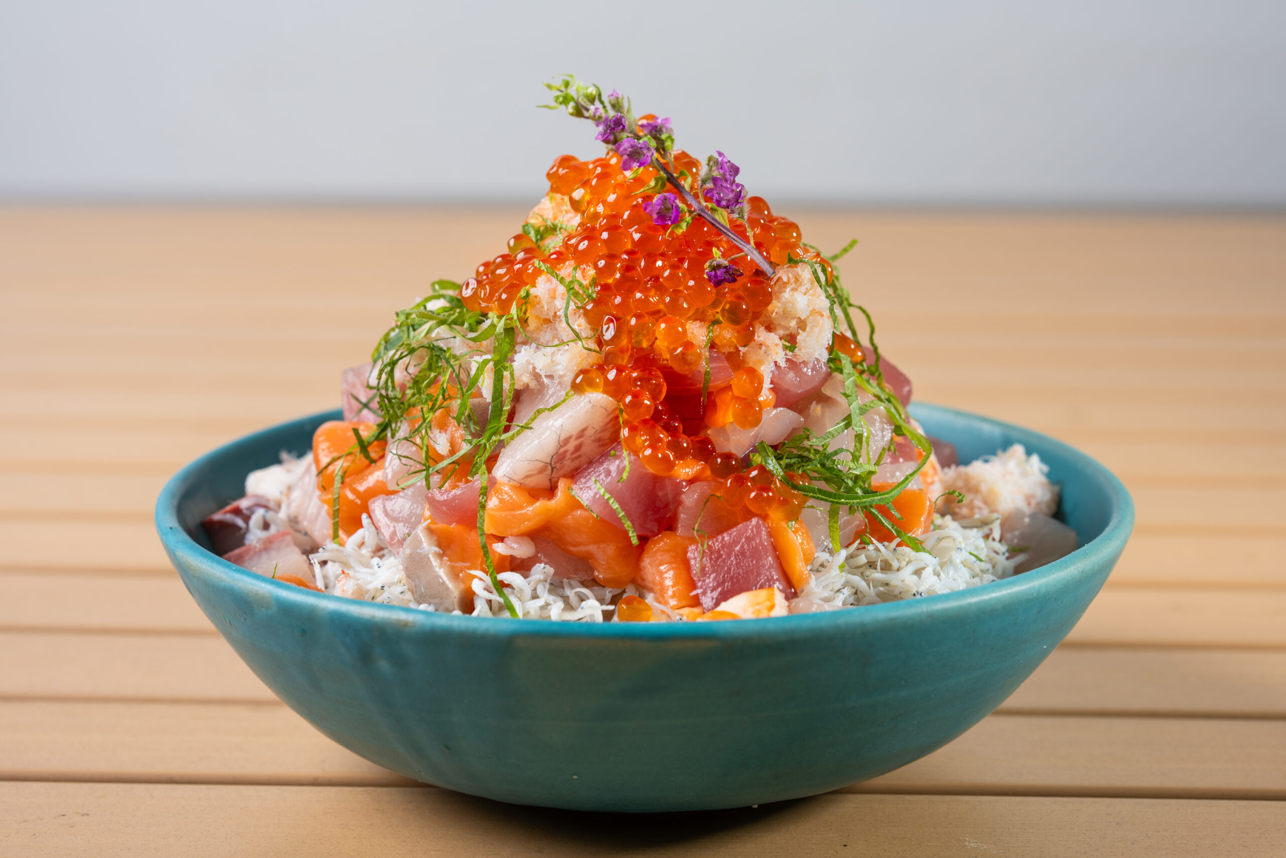 → 彩り豊かな海鮮丼が不動の1位でした!海王市場の人気看板メニューです。いくら・鯛・蟹・ハマチと豪華四点盛り、大満足間違いなし!