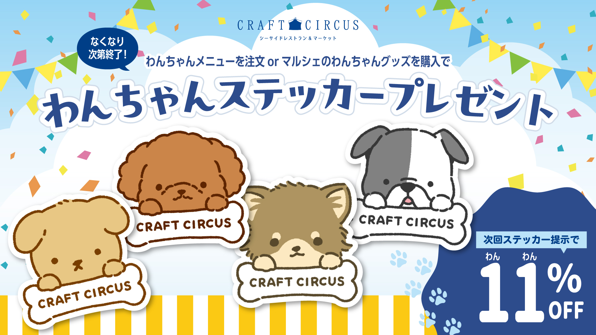 11/1(土)より、クラフトサーカスではわんちゃんステッカーの配布を実施いたします🐶