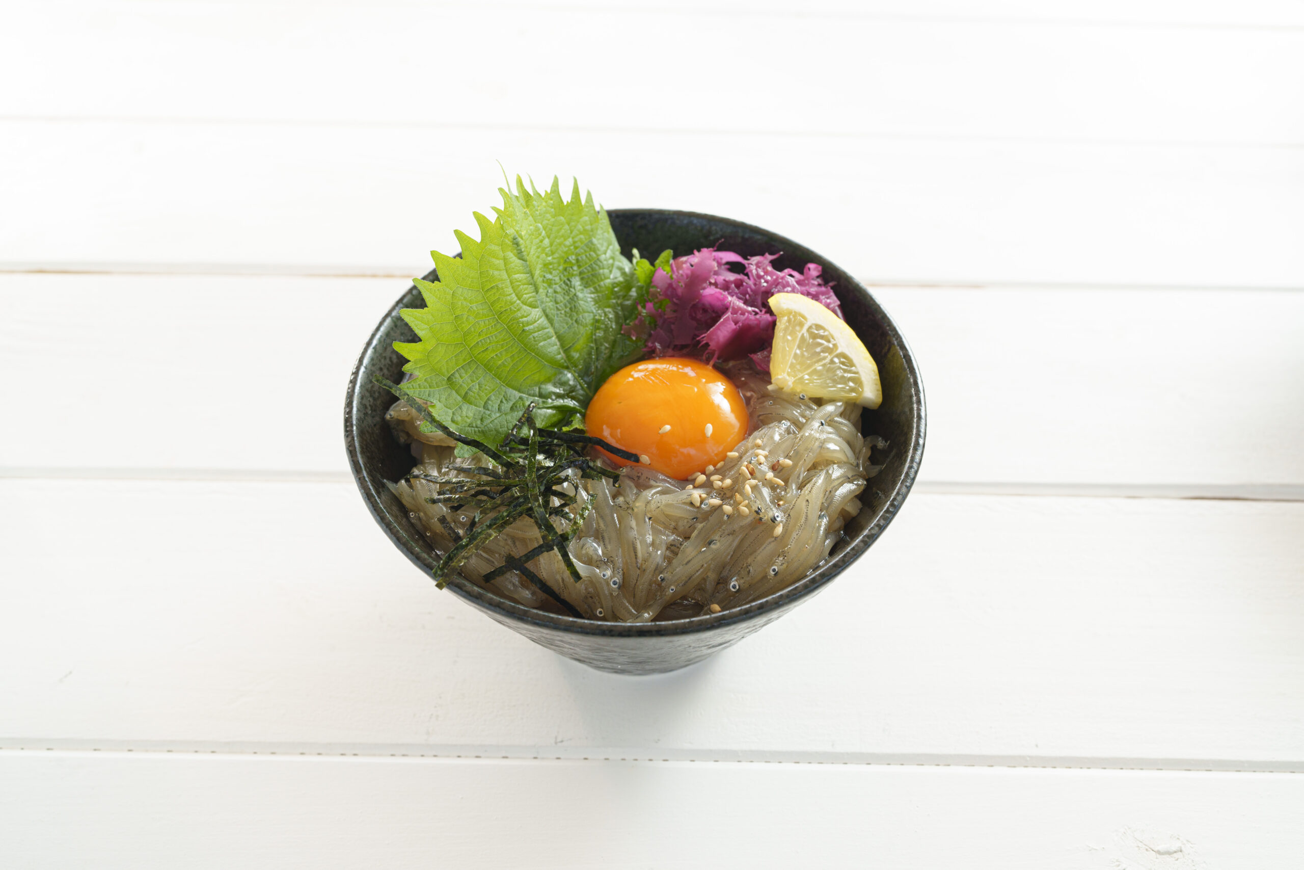 当店の生しらす丼(1,900円)は、地元の岩屋港で水揚げされたばかりのしらすを贅沢に使用。水揚げ直後に瞬間冷凍することで、獲れたての「ぷりぷり食感」と「濃厚な甘み」をそのまま閉じ込めました。生卵との相性も抜群で、とろけるような喉越しをお楽しみいただけます。